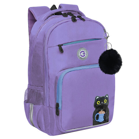 Рюкзак GRIZZLY школьный, анатомическая спинка, 2 отделения, для девочек, "CATCAO", лавандовый, 40х25 отзывы