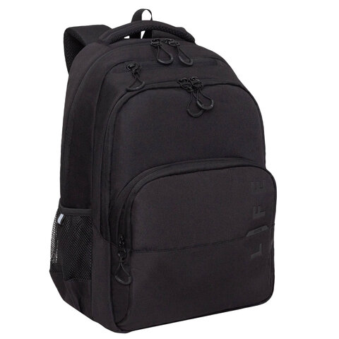 Рюкзак GRIZZLY школьный, анатомическая спинка, 2 отделения, для мальчиков, "LIFE", чёрный, 45х32х23