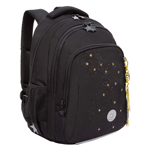 Рюкзак GRIZZLY школьный, анатомическая спинка, 3 отделения, для девочек, "GOLDEN&BLACK", 40х27х20 см