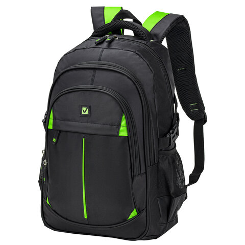 Рюкзак BRAUBERG TITANIUM универсальный, черный, салатовые вставки, 45х28х18см, 270766