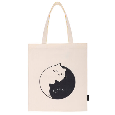 Сумка-шоппер BRAUBERG PREMIUM, канвас, 40х35 см, на кнопке, карман, бежевый, "Yin-yang", 271901 отзывы