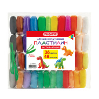 Пластилин лёгкий воздушный застывающий 48 штук (36 цветов + 12 базовых), 410 г, 3 стека, ПИФАГОР, 10