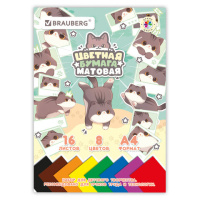 Цветная бумага А4 офсетная, 16 листов, 8 цветов, на скобе, кросс-серия "МИЛЫЕ КОТЫ", 200х275 мм, BRA