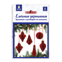 Елочные украшения из бумаги, НАБОР 6 шт., с глиттером, цвет бургунди, ЗОЛОТАЯ СКАЗКА, 592540
