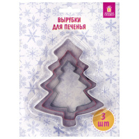 Набор вырубок для печенья новогодний 3 шт., "Елочки", нержавеющая сталь, рецепт, ЗОЛОТАЯ СКАЗКА, 592