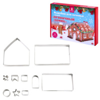 Набор вырубок для печенья, 10 деталей, "Пряничный домик", нержавеющая сталь, рецепт, ЗОЛОТАЯ СКАЗКА,