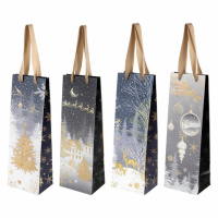 Пакет подарочный под бутылку НАБОР 4 штуки новогодний 12x9x36 см, "Bottle", ЗОЛОТАЯ СКАЗКА, 592135