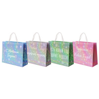 Пакет подарочный (1 шт.) новогодний, 26х13х32 см, "Сияние", ГОЛОГРАФИЯ, ассорти 4 дизайна, ЗОЛОТАЯ С