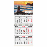 Календарь квартальный на 2026 г., 3 блока, 3 гребня, бегунок, мелованная бумага, BRAUBERG, "Россия",