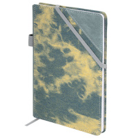 Блокнот А5 135x210 мм BRAUBERG "Denim", ткань/экокожа, резинка, держатель, 80 л., клетка, голубой, 1
