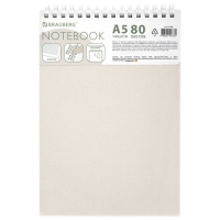 Блокнот А5, 80 л., силиконовый гребень, обложка пластик, клетка, BRAUBERG, бежевый, 117559