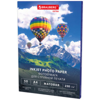 Фотобумага матовая, А4, 230 г/м2, односторонняя, 50 листов, BRAUBERG EXTRA, 364488