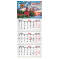 Календарь квартальный на 2026 г., 3 блока, 3 гребня, бегунок, мелованная бумага, BRAUBERG, "Россия",