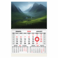 Календарь квартальный на 2026 г., 1 блок, 1 гребень, бегунок, офсет, BRAUBERG, "Горная долина", 1167
