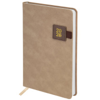 Ежедневник датированный 2026 А5 138х213 мм, BRAUBERG "Accent", под кожу, держатель, бежевый/коричнев