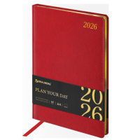 Еженедельник датированный 2026, БОЛЬШОЙ ФОРМАТ 210х297 мм, А4, BRAUBERG "Iguana", под кожу, красный,