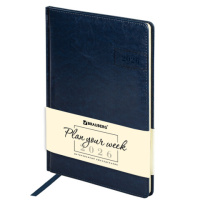 Еженедельник датированный 2026 А5 145х215 мм, BRAUBERG "Augustus", под кожу, темно-синий, 117164