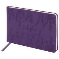 Еженедельник датированный 2026 МАЛЫЙ ФОРМАТ 95х155 мм, А6, BRAUBERG "Foliage", под кожу, сиреневый,