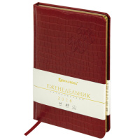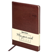 Еженедельник датированный 2026, А5, 145х215 мм, BRAUBERG "Imperial", под кожу, коричневый, 117173