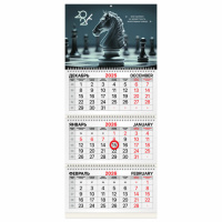 Календарь квартальный на 2026 г., 3 блока, 3 гребня, бегунок, мелованная бумага, BRAUBERG, "Россия",