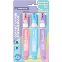 Ручка-корректор 9 мл ВЫГОДНАЯ УПАКОВКА, КОМПЛЕКТ 3 штуки, BRAUBERG Pastel, 274237