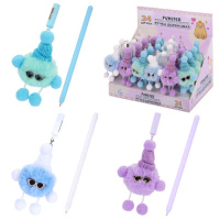 Ручка с пушистой подвеской шариковая FUNSTER (ФАНСТЕР) "FLUFFY HAT", СИНЯЯ, пишущий узел 0,7 мм, 144