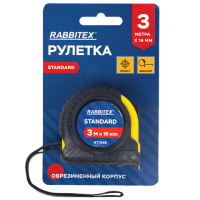 Рулетка измерительная 3 м х 16 мм, обрезиненный корпус, с фиксатором, RABBITEX (РАББИТЕКС) Standard,