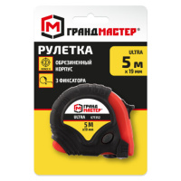 Рулетка измерительная 5 м х 19 мм, обрезиненный корпус, 3 фиксатора, ГРАНДМАСТЕР Ultra, 671352