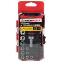 Набор бит и торцевых головок с трещоткой 1/4", 27 предметов, пластиковый бокс, ГРАНДМАСТЕР, 671327