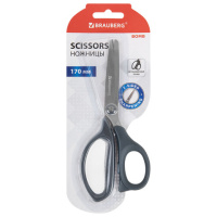 Ножницы BRAUBERG "Super black" 170 мм, черные, 3-сторонняя заточка, ручки из ABS-пластика, 238854