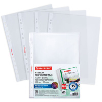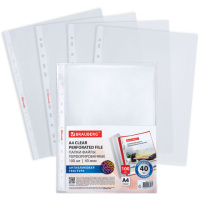 Папки-файлы перфорированные А4+ BRAUBERG, КОМПЛЕКТ 50 шт., матовые, СВЕРХПРОЧНЫЕ, 100 мкм, 225219