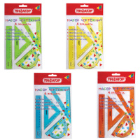 Набор чертежный ПИФАГОР (линейка 16 см, 2 треугольника, транспортир), неоновый, прозрачный, ассорти,