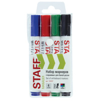 Маркеры стираемые для белой доски, НАБОР 4 ЦВЕТА, STAFF "MANAGER" WBM-300, 3 мм, с клипом, 152637