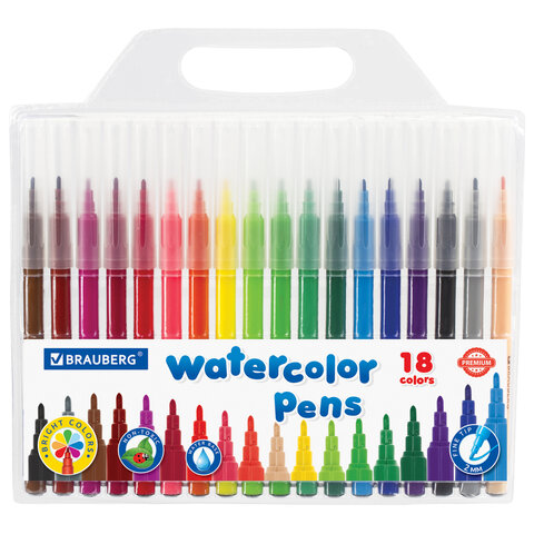 Фломастеры BRAUBERG "PREMIUM", 18 цветов, КЛАССИЧЕСКИЕ, вентилируемый колпачок, ПВХ-упаковка с европ