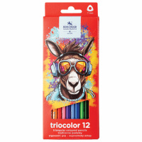Карандаши цветные KOH-I-NOOR "DONKEY" 12 цветов, трехгранные, 3,2 мм, натуральное дерево, 3132/12, 3