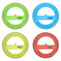 Транспортир пластиковый 10 см, 360 градусов, ПИФАГОР, прозрачный, неоновый, ассорти, 210848