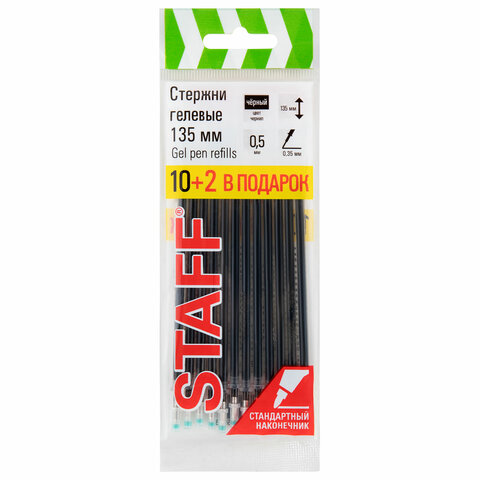 Стержни гелевые STAFF, 135 мм, НАБОР 10 шт. + 2 шт. в ПОДАРОК, ЧЕРНЫЕ, стандартный наконечник, узел отзывы
