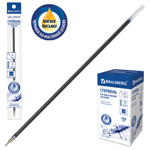 Стержень шариковый масляный BRAUBERG, 140 мм, СИНИЙ, игольчатый узел 0,7 мм, линия письма 0,35 мм, 1 отзывы