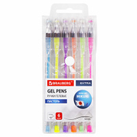 Ручки гелевые БЛЕСТКИ BRAUBERG "EXTRA", НАБОР 6 ЦВЕТОВ, узел 0,7 мм, линия 0,5 мм, 143908