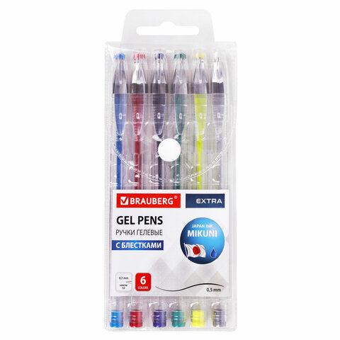 Ручки гелевые БЛЕСТКИ BRAUBERG "EXTRA", НАБОР 6 ЦВЕТОВ, узел 0,7 мм, линия 0,5 мм, 143908 отзывы