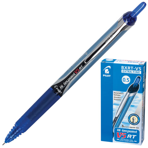 Ручка-роллер автоматическая с грипом PILOT "Hi-Tecpoint V5 RT", СИНЯЯ, игольчатый узел 0,5 мм, линия отзывы