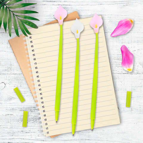 Шариковая ручка ЮНЛАНДИЯ "Цветок" с мягким силиконовым корпусом.Шариковая ручка серии FUNNY YUMMY с мягким силиконовым корпусом и оригинальным дизайном в виде цветка. Благодаря привлекательному дизайну ее не захочется выпускать из рук. Диаметр игольчатого пишущего узла, равный 0,7 мм, создает линию письма, равную 0,35 мм. Длина сменного стержня составляет 129 мм. Цвет чернил - синий.