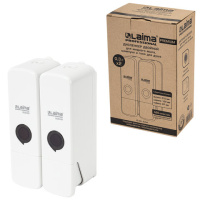 Дозатор двойной 2 х 0,3 л для жидкого мыла/шампуня/геля LAIMA PREMIUM, НАЛИВНОЙ, белый, ABS-пластик,