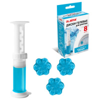 Диски гелевые, освежитель и очиститель для унитаза / писсуара, 8 дисков 44 г, LAIMA, "Океан", шприц,