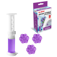 Диски гелевые, освежитель и очиститель для унитаза / писсуара, 8 дисков 44 г, LAIMA, "Лаванда", шпри