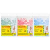 Шторка для ванной PEVA, 180х200 см, кольца в комплекте, 3 цвета ассорти (белый, голубой, коричневый)