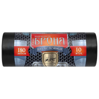 Мешки для мусора 180 л, ПРОЧНЫЕ черные, в рулоне 10 шт., ПВД 60 мкм, 2-х слойные, 90x110 см, "БРОНЯ"