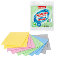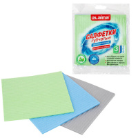 Салфетки губчатые для уборки кухни 15х18 см, ЦЕЛЛЮЛОЗНЫЕ, КОМПЛЕКТ 3 шт., цветные, LAIMA, 700265