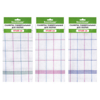 Салфетка универсальная, ХЛОПОК, 47х65 см, белая клетка, легкий цветной контур, ассорти, BOOMHOUSE (Б