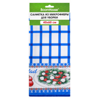 Салфетка из МИКРОФИБРЫ универсальная, 40х60 см, синяя клетка, орнамент, 240 г/м2, BOOMHOUSE (БУМХАУС